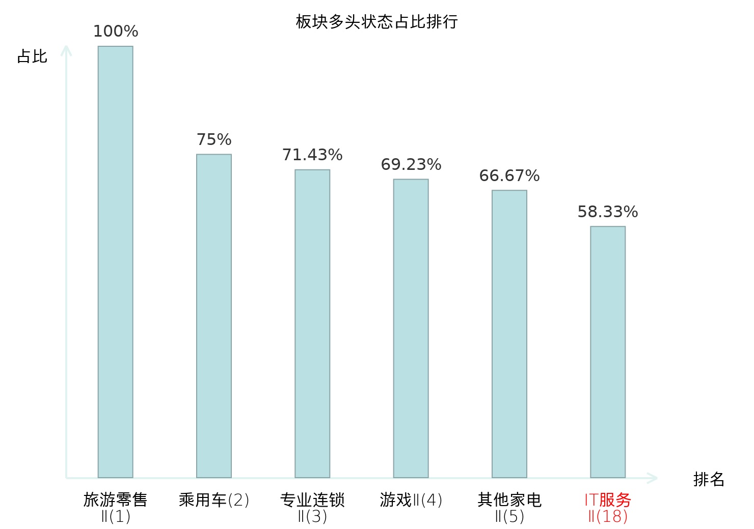 全市场所有行业板块中主力多头状态占比排名中,旅游零售Ⅱ板块位居第一。保险Ⅱ板块名次提升最快,较昨日上升82位。