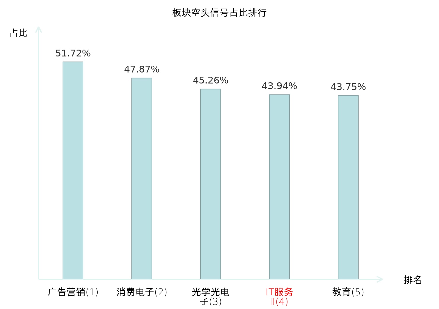 全市场所有行业板块中主力空头信号占比排名中,广告营销板块位居第一。广告营销板块名次提升最快,较昨日上升115位。