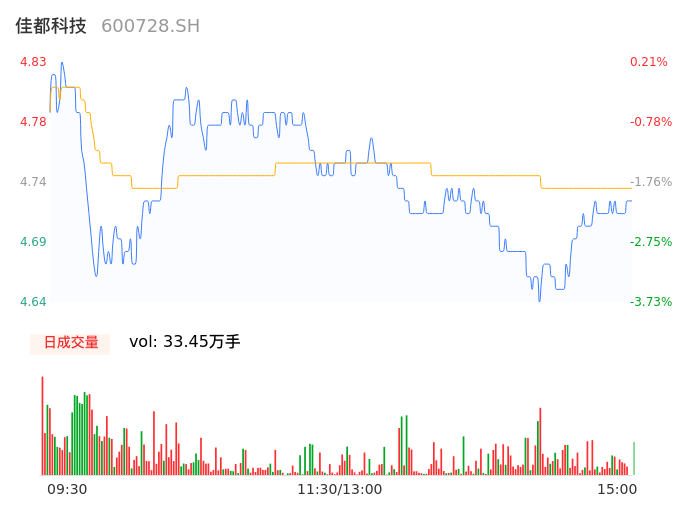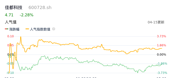 04月15日,佳都科技收报4.71,股价涨幅-2.28%,成交金额1.58亿元,换手率1.57%。