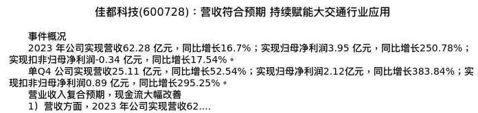 值得注意的是:2024年04月华安证券的金荣/王奇珏分析师,首次发布关于佳都科技的研究报告,标题为:佳都科技(600728):营收符合预期 持续赋能大交通行业应用。
