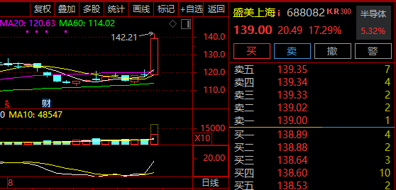 半导体概念早间大幅高开高走,板块指数一度放量飙升逾6%,创3年半新高。盛美上海盘中20%涨停,创历史新高,海光信息、盛科通信、寒武纪等股价也纷纷刷新历史纪录。