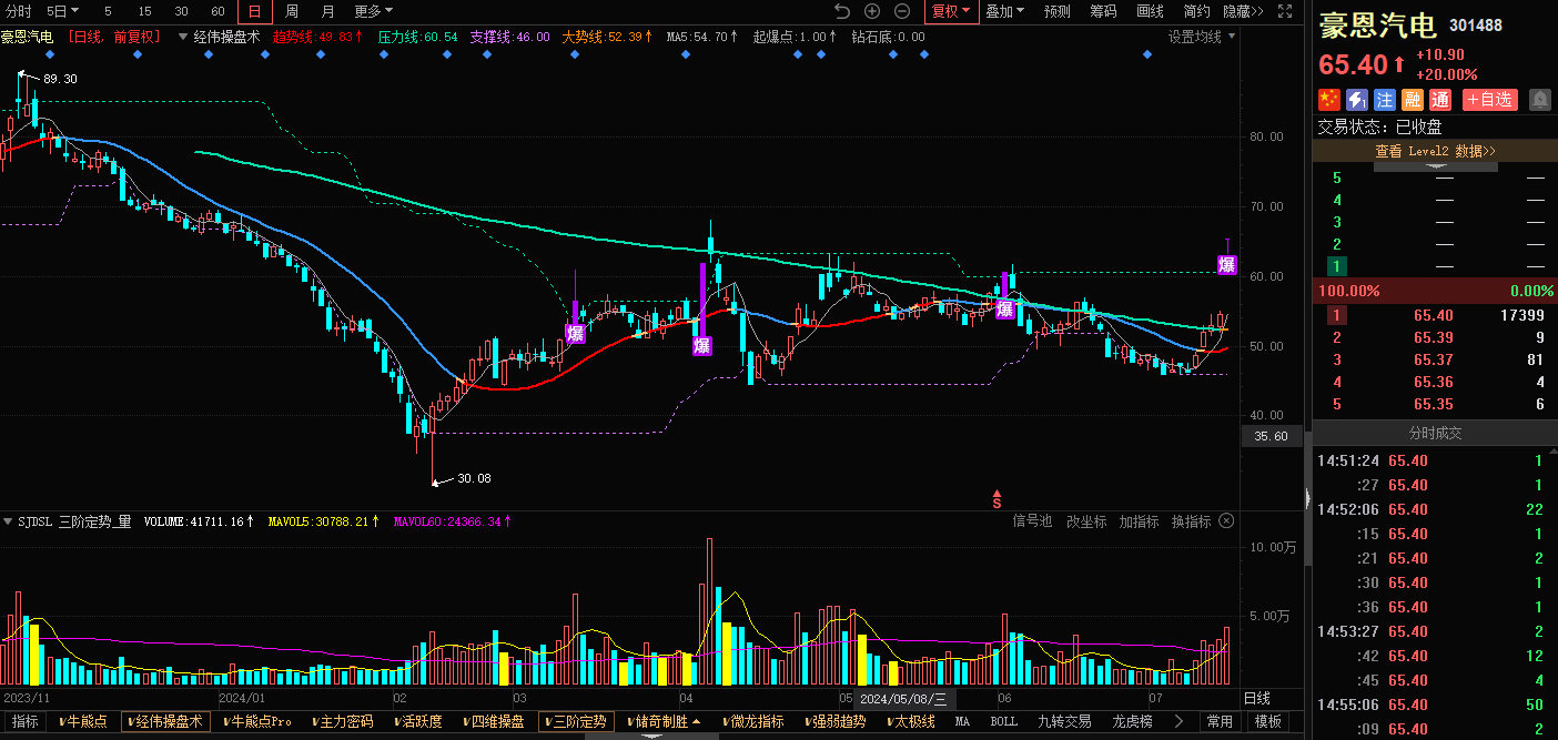 豪恩汽电-经伟操盘术指标-出现爆点信号