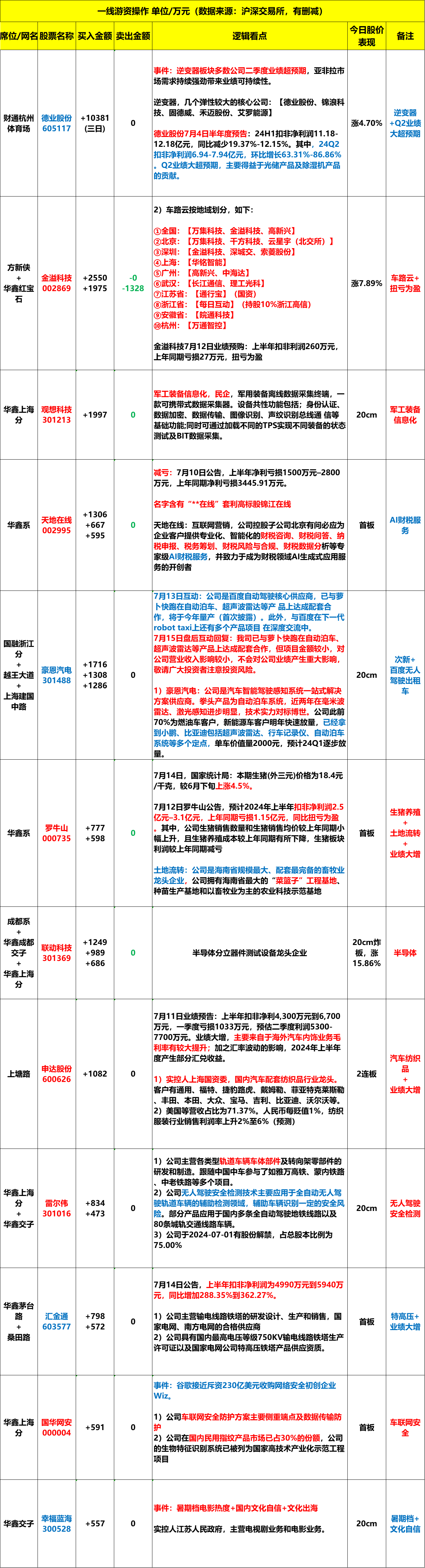 2024年7月15日周一,龙虎榜解析。