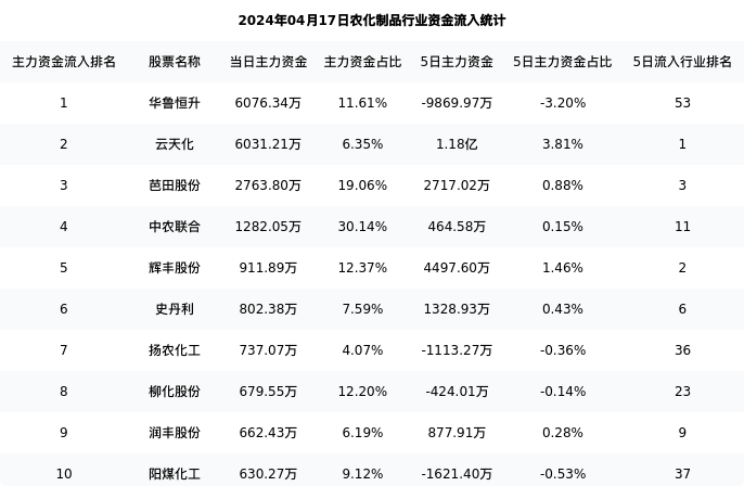 从主力资金流向来看,农化制品行业今日主力资金流入20.84亿元,在所有申万二级行业中排名:41/131。