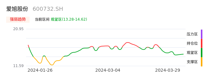 我们来看一下该股的九方特色指标强弱趋势的情况:爱旭股份自03月21日从持仓区下穿到观望区,股价近期持续走弱。短期已经进入空头行情,且下跌动能仍未衰竭。建议继续谨慎观望。