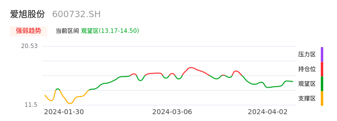我们来看一下该股的九方特色指标强弱趋势的情况:爱旭股份自03月21日从持仓区下穿到观望区,股价近期持续走弱。短期已经进入空头行情,且下跌动能仍未衰竭。建议继续谨慎观望。