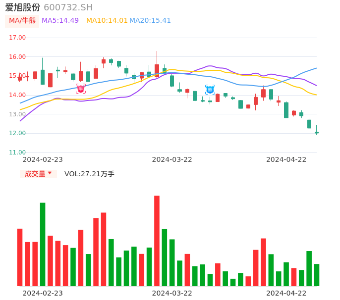 04月22日,爱旭股份收报12.01,股价涨幅-2.12%,成交金额3.30亿元,换手率1.70%。