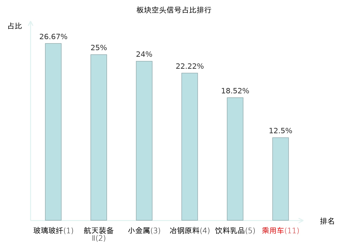 全市场所有行业板块中主力空头信号占比排名中,玻璃玻纤板块位居第一。普钢板块名次提升最快,较昨日上升113位。
