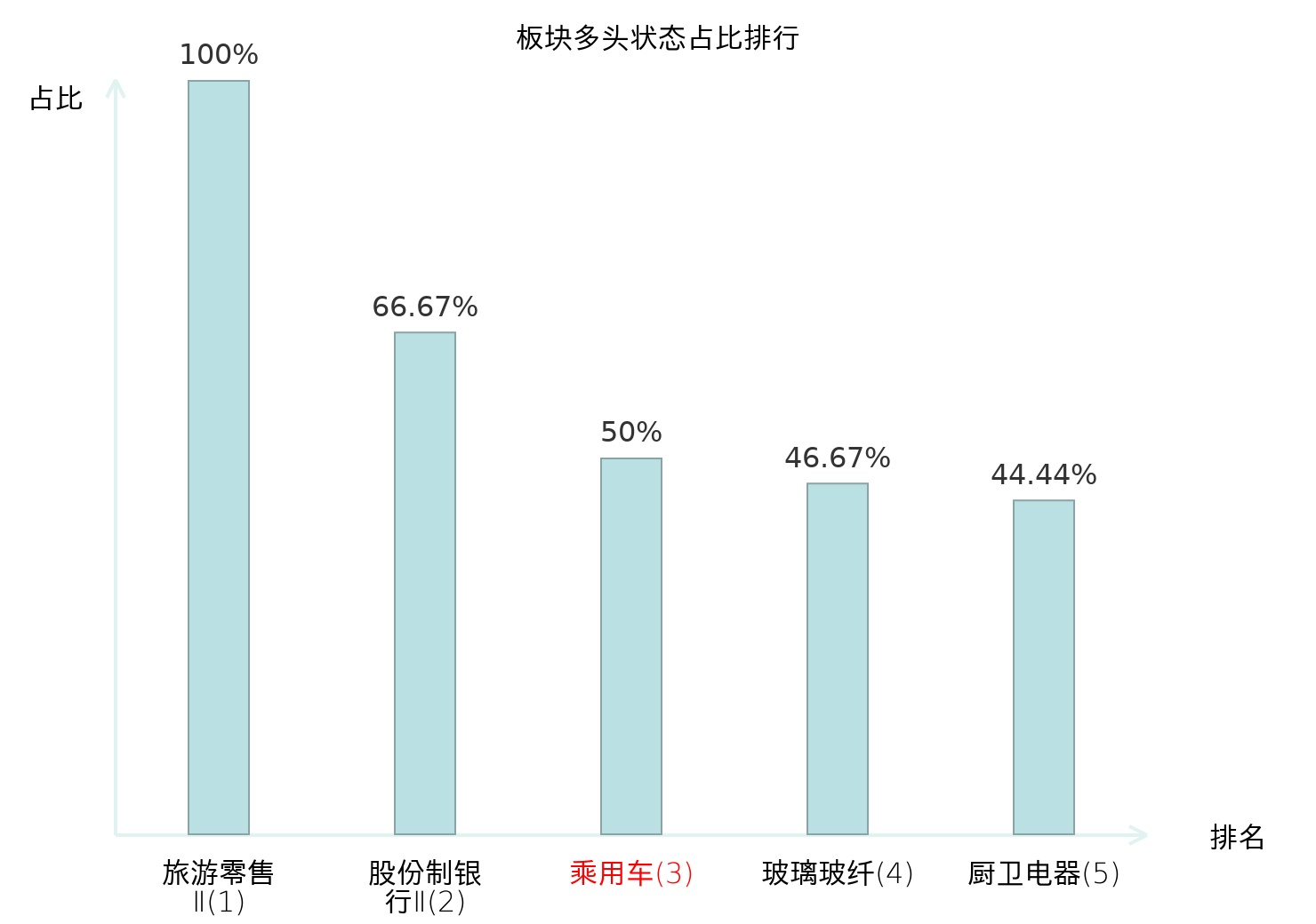 全市场所有行业板块中主力多头状态占比排名中,旅游零售Ⅱ板块位居第一。农产品加工板块名次提升最快,较昨日上升72位。