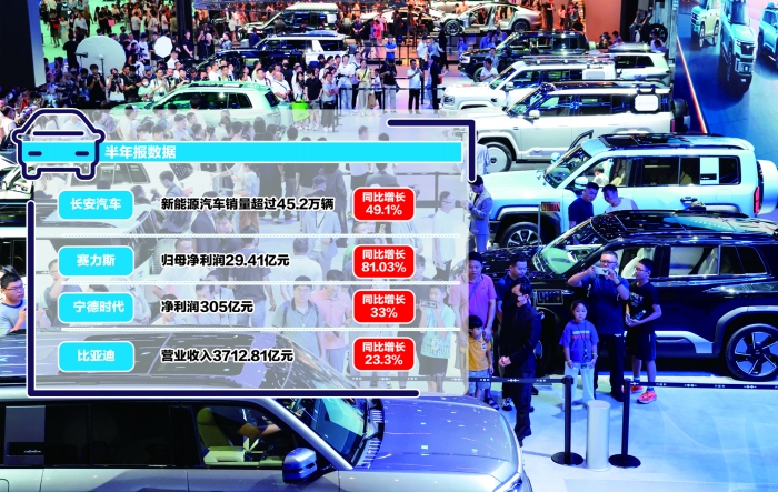 近期,中国汽车行业上市公司半年报陆续发布,相关公司的新能源汽车业务表现突出。长安汽车等传统车企的新能源汽车销量正快速发展成为企业新的增长极。赛力斯、北汽蓝谷等公司通过与华为等巨头的跨界合作,在新能源汽车细分领域均获得增长。专注于新能源汽车的比亚迪,正通过新能源规模化和全球化推动企业经营业绩进一步增长。