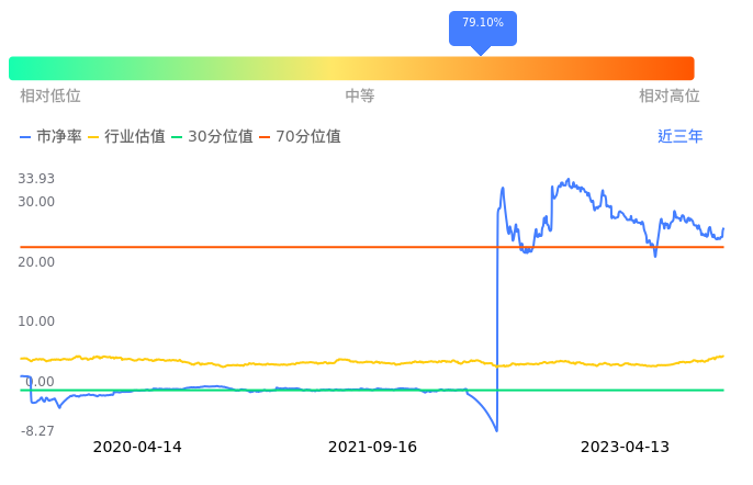 ST实达当前市净率PB为25.81,在所属的通信设备中,市净率PB排84,前五名分别为*ST新海市净率1.02、共进股份市净率1.55、高鸿股份市净率1.59、佳讯飞鸿市净率1.77、亨通光电市净率1.81。ST实达当前市净率PB为25.75,超过近3年79.10%的历史数据。