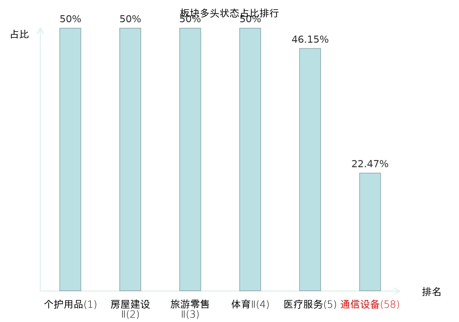 全市场所有行业板块中主力多头状态占比排名中,个护用品板块位居第一。影视院线板块名次提升最快,较昨日上升56位。