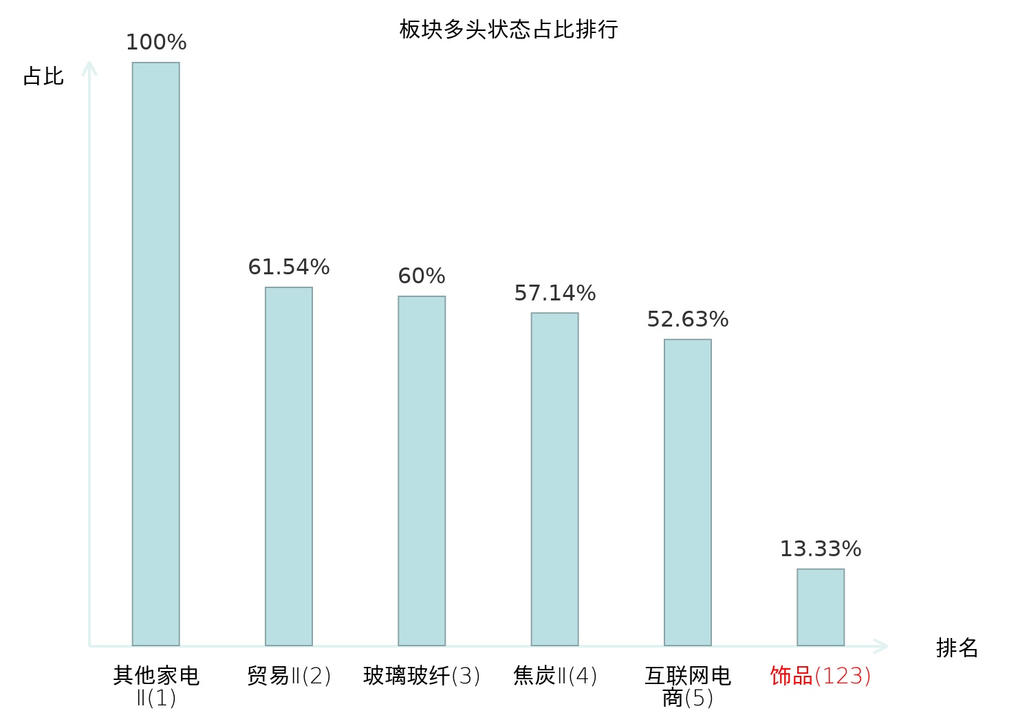 从主力宝信号数据分析,新华锦所属的饰品板块中共2只股票处于主力多头状态,主力多头状态占比在全行业中排名第123位,较昨日一致。排名越高说明主力对于板块整体看多意愿越强;全市场所有行业板块中主力多头状态占比排名中,其他家电Ⅱ板块位居第一。教育板块名次提升最快,较昨日上升50位。这些变化体现了主力资金在不同行业间的偏好调整,为投资者观察市场趋势提供了重要参考。