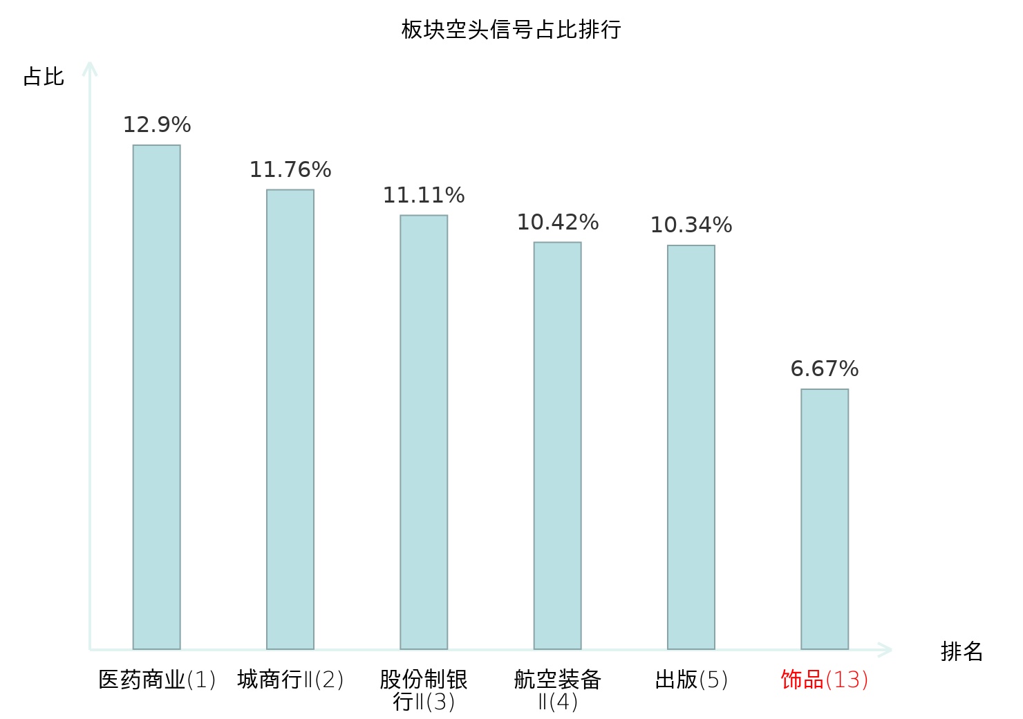 从主力宝信号数据分析,新华锦所属的饰品板块中共1只股票发出主力空头信号,主力空头信号占比在全行业中排名第13位,较昨日上升18位。排名越高说明主力当日卖出意愿越强。全市场所有行业板块中主力空头信号占比排名中,医药商业板块位居第一;城商行Ⅱ板块名次提升最快,较昨日上升102位。这些变动揭示了不同行业间主力资金动向的趋势,为投资者提供了关于市场情绪和潜在风险的重要线索。