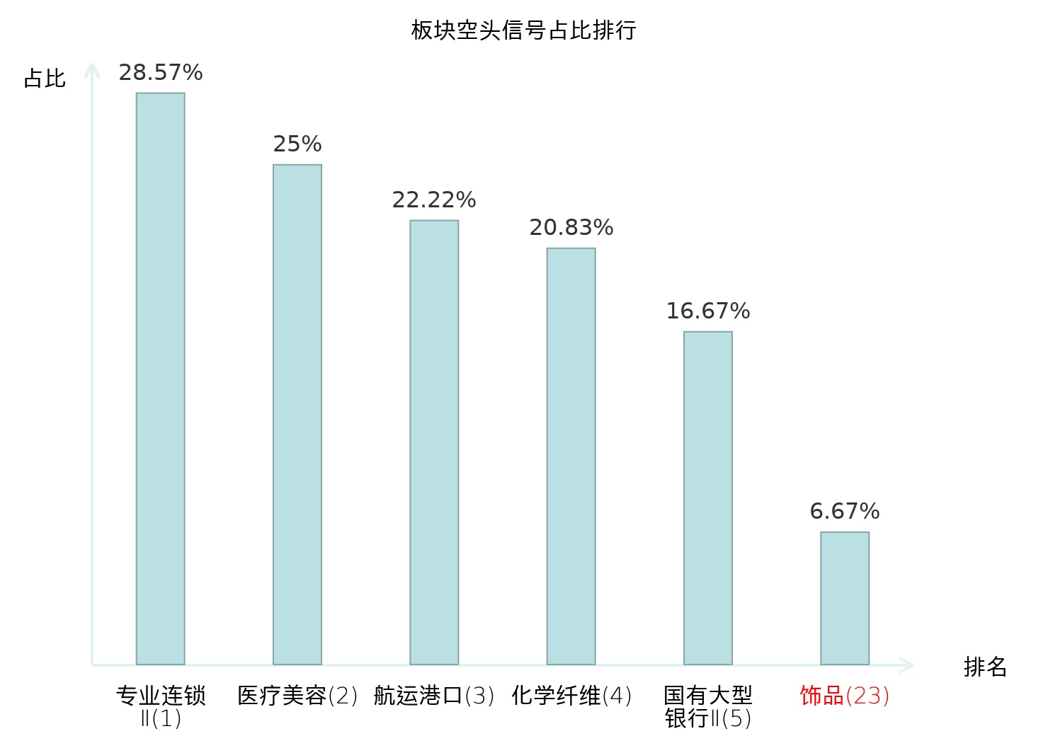 从主力宝信号数据分析,新华锦所属的饰品板块中共有1只股票发出主力空头信号,主力空头信号占比在全行业中排名第23位,较昨日上升89位。排名越高说明主力当日卖出意愿越强。全市场所有行业板块中主力空头信号占比排名中,专业连锁Ⅱ板块位居第一;食品加工板块名次提升最快,较昨日上升106位。这些变动揭示了不同行业间主力资金动向的趋势,为投资者提供了重要的市场参考。