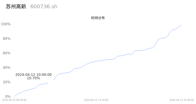 600736苏州高新2024年04月12日成交6.03万手,成交金额2684.53万元,相较昨日放量5134手,换手率0.52%,成交清淡。