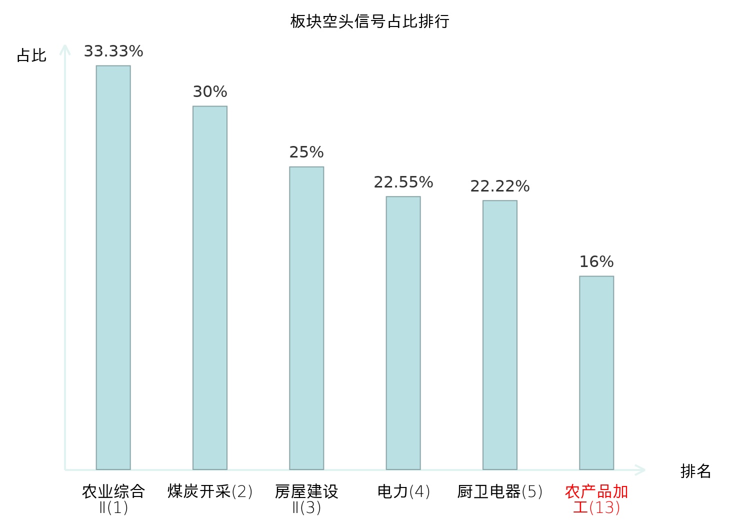 全市场所有行业板块中主力空头信号占比排名中,农业综合Ⅱ板块位居第一。旅游及景区板块名次提升最快,较昨日上升112位。