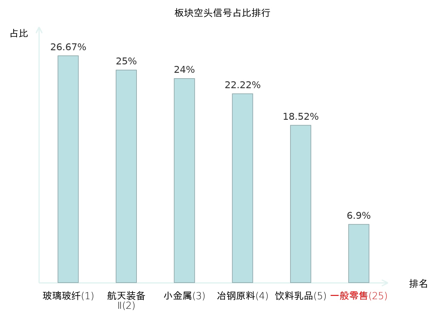 全市场所有行业板块中主力空头信号占比排名中,玻璃玻纤板块位居第一。普钢板块名次提升最快,较昨日上升113位。