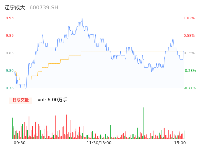 04月25日,辽宁成大收报9.84,股价涨幅0.10%,成交金额5906.47万元,换手率0.39%。