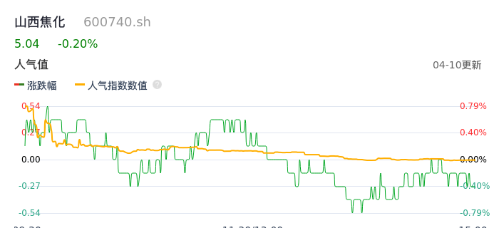 04月10日,山西焦化收报5.04,股价涨幅-0.20%,成交金额9174.57万元,换手率0.71%。
