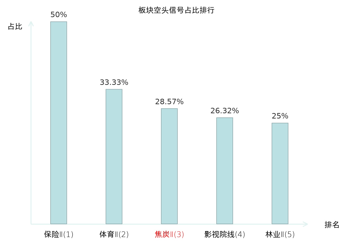 全市场所有行业板块中主力空头信号占比排名中,保险Ⅱ板块位居第一。装修建材板块名次提升最快,较昨日上升118位。