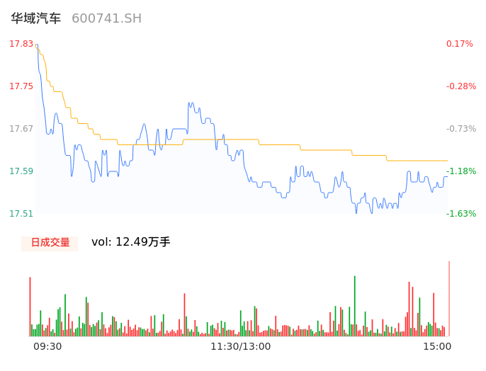 04月25日,华域汽车收报17.60,股价涨幅-1.12%,成交金额2.20亿元,换手率0.40%。