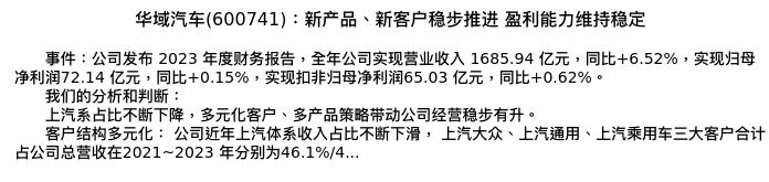 值得注意的是:2024年04月中国银河的石金漫/秦智坤分析师,首次发布关于华域汽车的研究报告,标题为:华域汽车(600741):新产品、新客户稳步推进 盈利能力维持稳定。