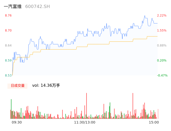 04月26日,一汽富维收报8.74,股价涨幅1.98%,成交金额1.25亿元,换手率1.93%。