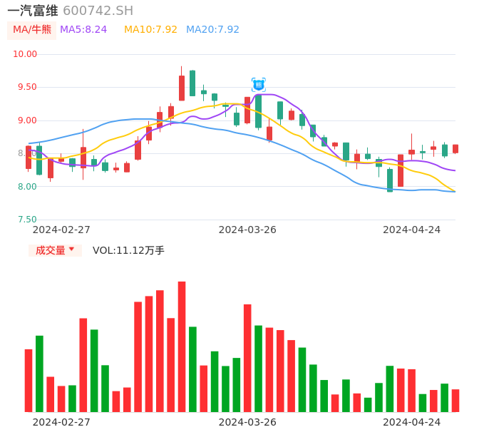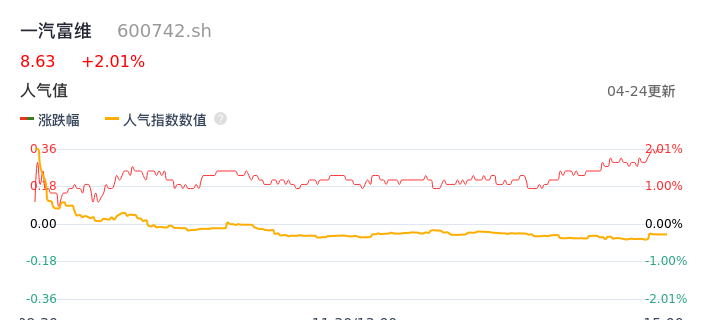 04月24日,一汽富维收报8.63,股价涨幅2.01%,成交金额9523.75万元,换手率1.50%。