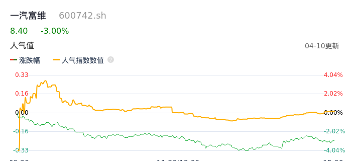 04月10日,一汽富维收报8.40,股价涨幅-3.00%,成交金额1.16亿元,换手率1.85%。