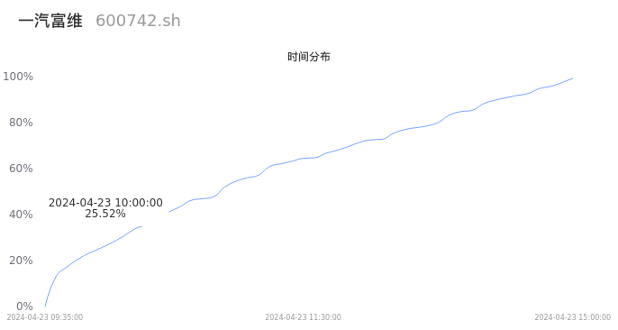根据成交分布分析,该股票当天放量成交,成交清淡。时间上看,早盘前半小时成交量占据当天总成交量的25.52%;价格上看,成交呈现左偏峰。成交分布分析主要研究股票成交的分布特性,不具有预测功能,请知悉。