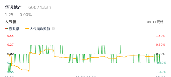 04月11日,华远地产收报1.25,股价涨幅0.00%,成交金额1702.60万元,换手率0.58%。