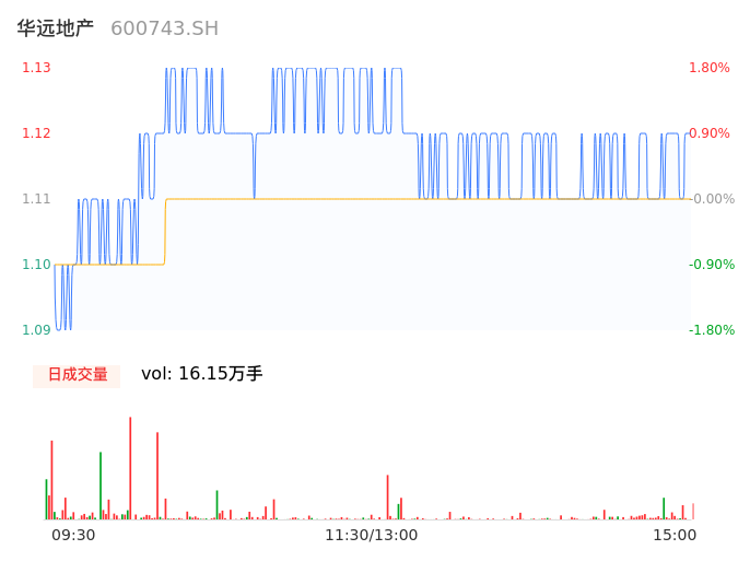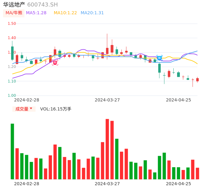 04月25日,华远地产收报1.12,股价涨幅0.90%,成交金额1795.86万元,换手率0.69%。
