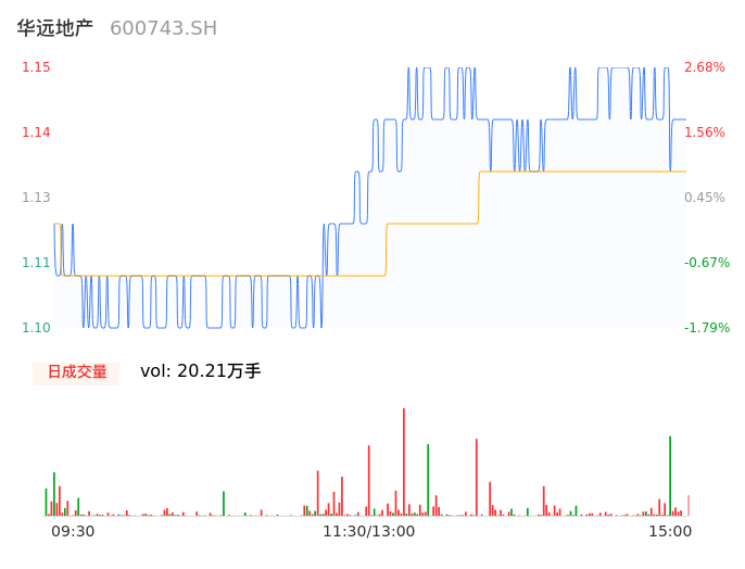 04月26日,华远地产收报1.14,股价涨幅1.79%,成交金额2282.70万元,换手率0.86%。