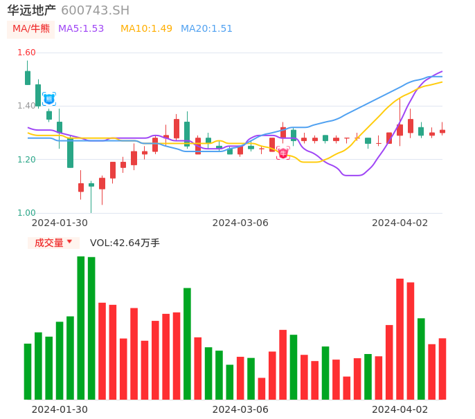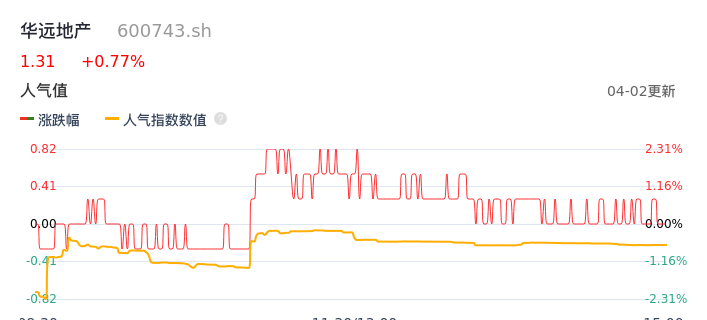 04月02日,华远地产收报1.31,股价涨幅0.77%,成交金额5574.69万元,换手率1.82%。