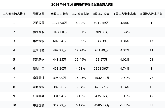 从主力资金流向来看,房地产开发行业今日主力资金流入31.84亿元,在所有申万二级行业中排名:73/131。