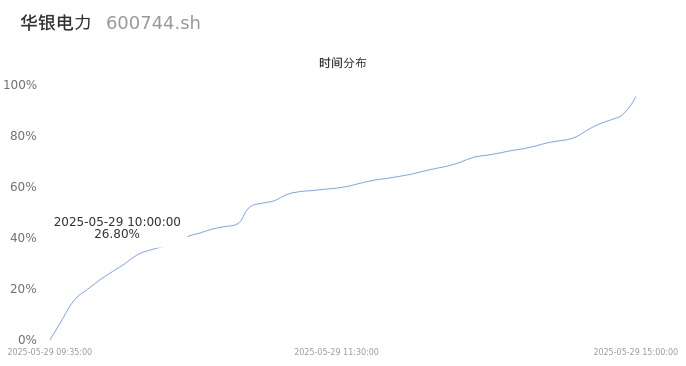 600744华银电力2025年05月29日成交98.39万手,成交金额4.68亿,相较昨日缩量40.24万手,换手率4.84%,成交清淡。