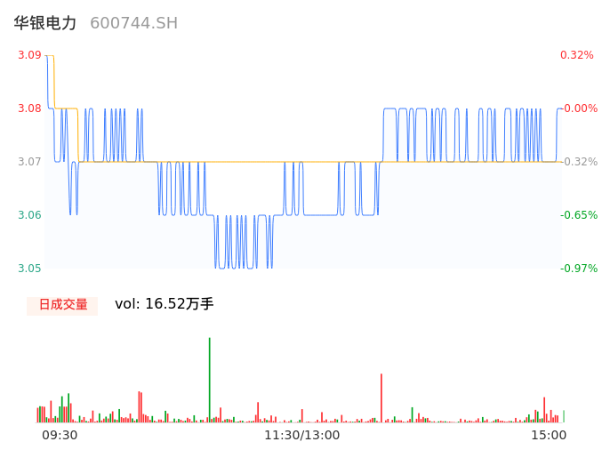 03月21日,华银电力收报3.07,股价涨幅-0.32%,成交金额5070.05万元,换手率0.81%。