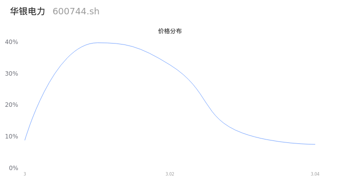 然后我们来看下当日成交的价格分布。经过分析发现,该股票当日成交价格波动低于10个最小波动价位,由于可以参考的样本量非常少,价格分布分析的结果不具有指导意义,下图仅供参考。