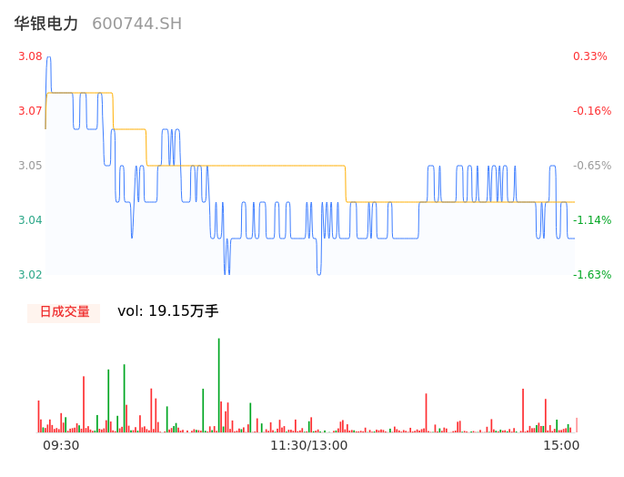 03月22日,华银电力收报3.03,股价涨幅-1.30%,成交金额5827.32万元,换手率0.94%。