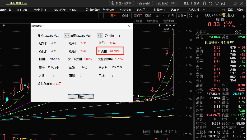 具体到个股来看,华银电力录得7天6板,截至发稿,8个交易日涨超84%。