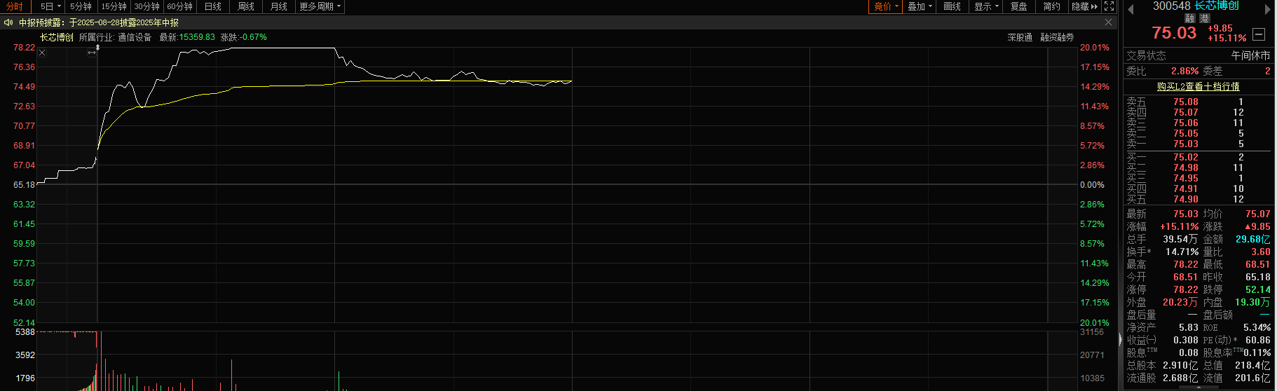 值得一提的是,从资本市场表现来看,长芯博创今日盘中也一度20cm涨停,股价创下历史新高78.22元/股。