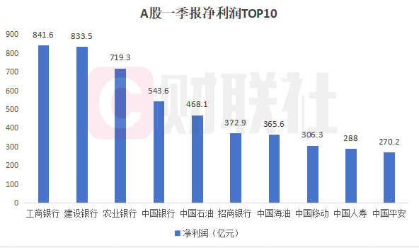 个股盈利方面,前十名大多来自于金融行业,工行、建行、农行和中行净利润稳居前四。