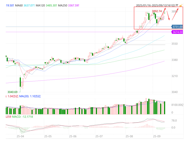 这进一步确认了本轮整固区间的下沿,大概率就是3700上方,除非出了意料之外的幺蛾子。