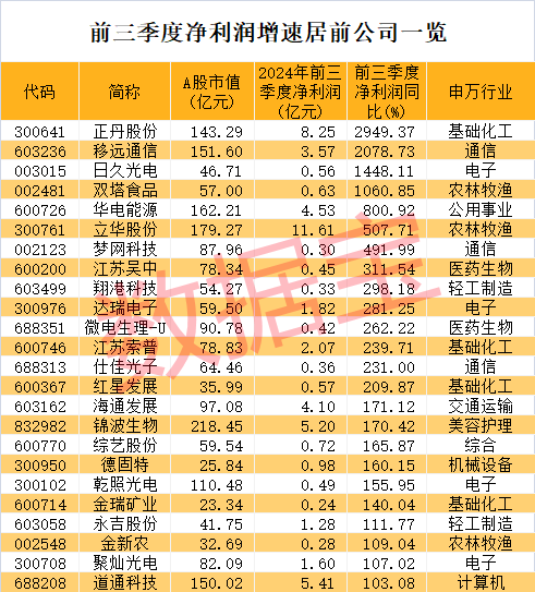 三季报业绩大增股揭晓