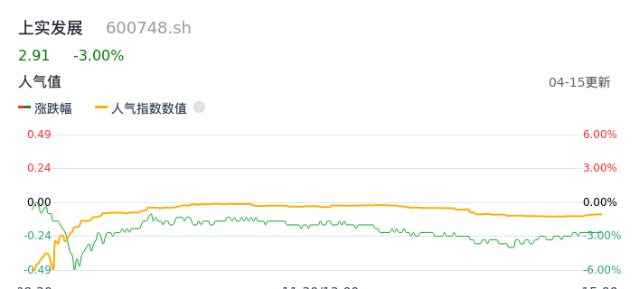 04月15日,上实发展收报2.91,股价涨幅-3.00%,成交金额5538.92万元,换手率1.03%。