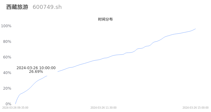 600749西藏旅游2024年03月26日成交3.53万手,成交金额3843.91万元,相较昨日缩量6352手,换手率1.56%,成交清淡。