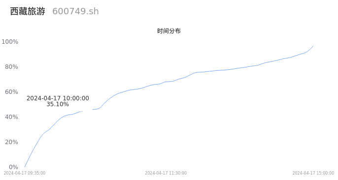 根据成交分布分析,该股票当天缩量成交,成交清淡。时间上看,早盘前半小时成交量占据当天总成交量的35.1%;价格上看,成交呈现中间峰。成交分布分析主要研究股票成交的分布特性,不具有预测功能,请知悉。
