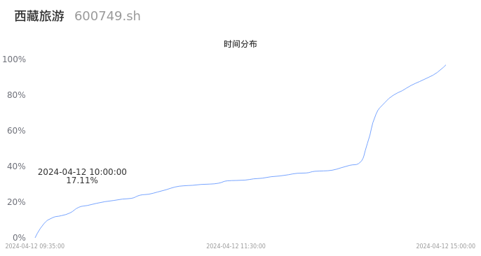 600749西藏旅游2024年04月12日成交13.53万手,成交金额1.60亿元,相较昨日放量5.27万手,换手率5.96%,成交清淡。
