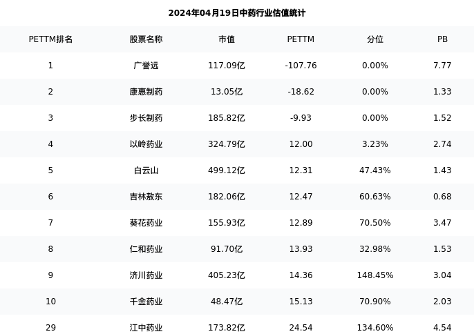 从估值角度看:江中药业最新市盈率PETTM为24.54,在行业内排名26/71,处于134.60分位。